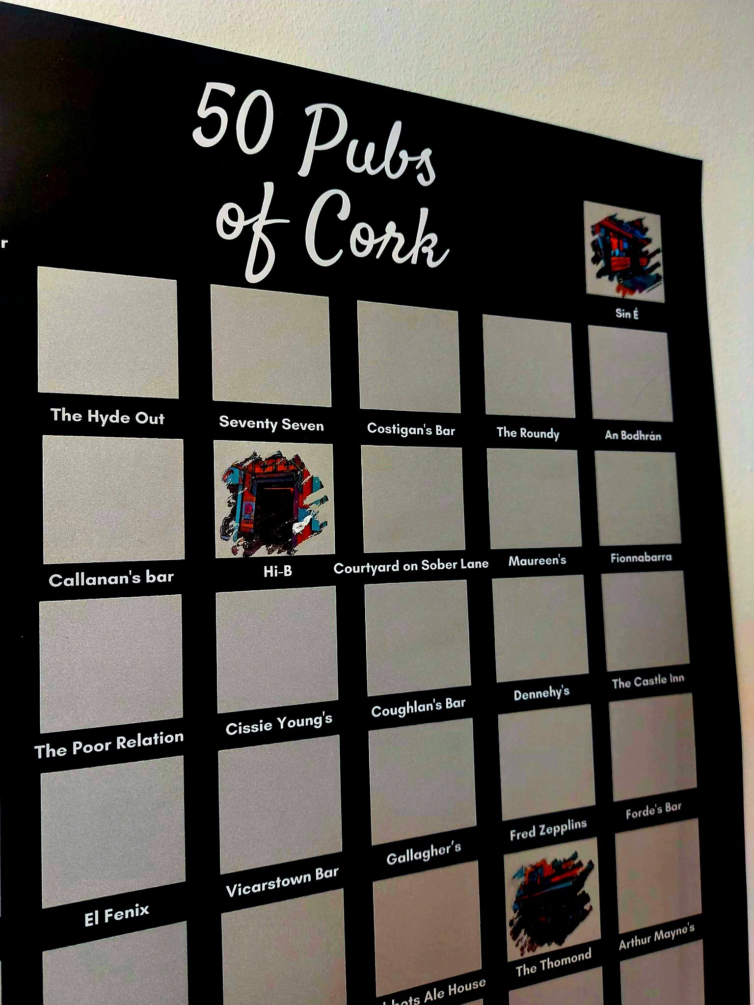 Uncover the hidden gems of Cork’s pub scene with our 50 Pubs of Cork, Scratch-Off Poster!