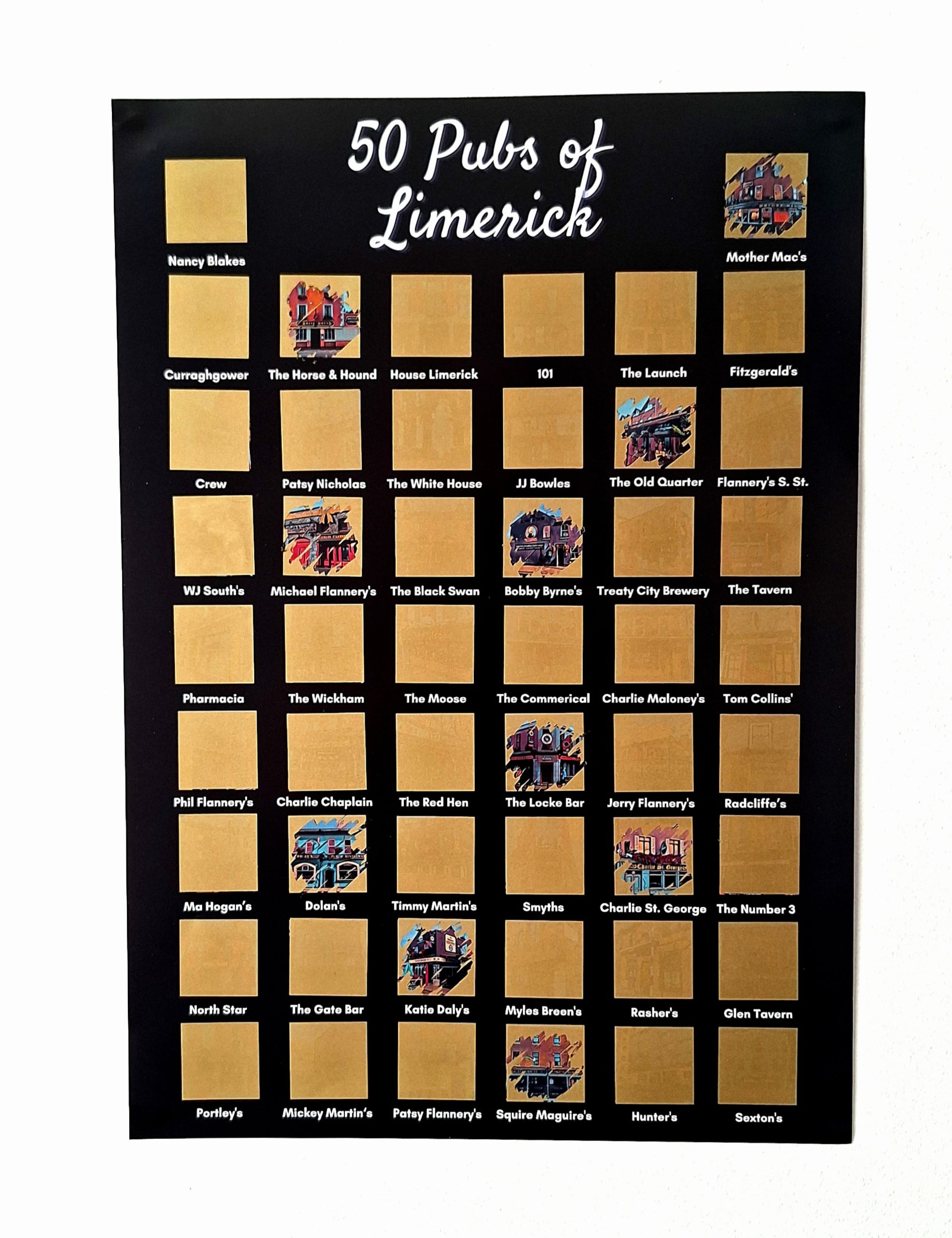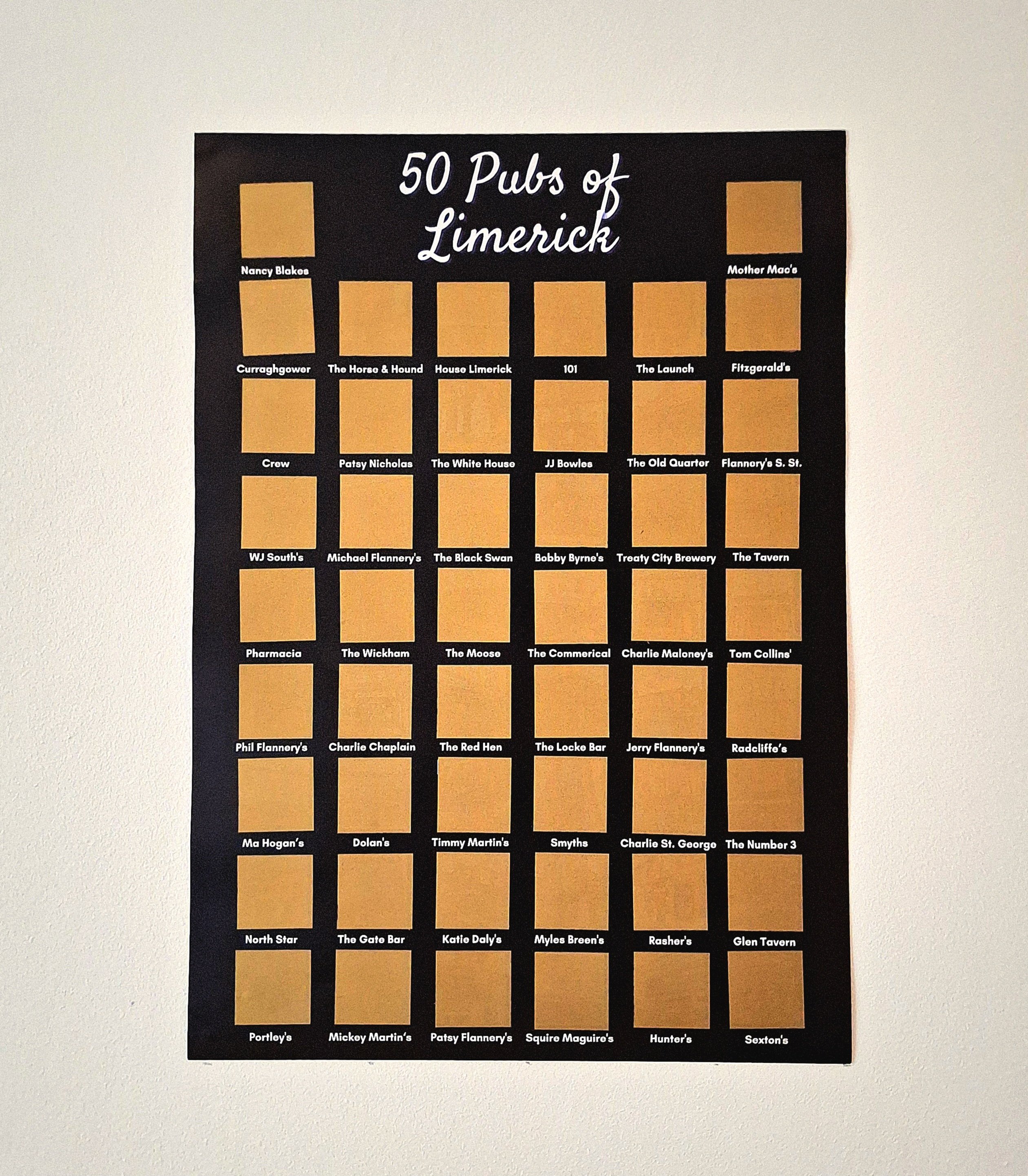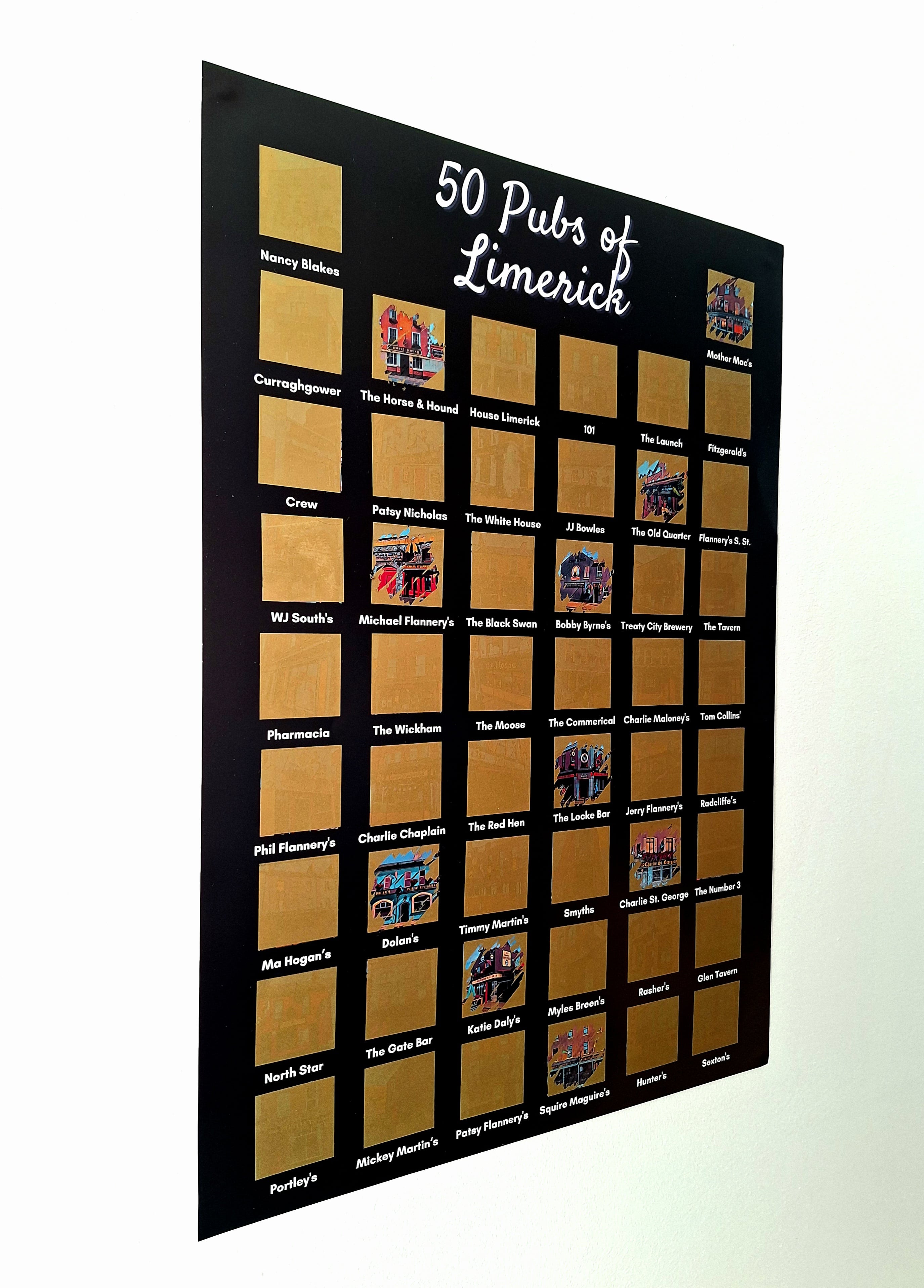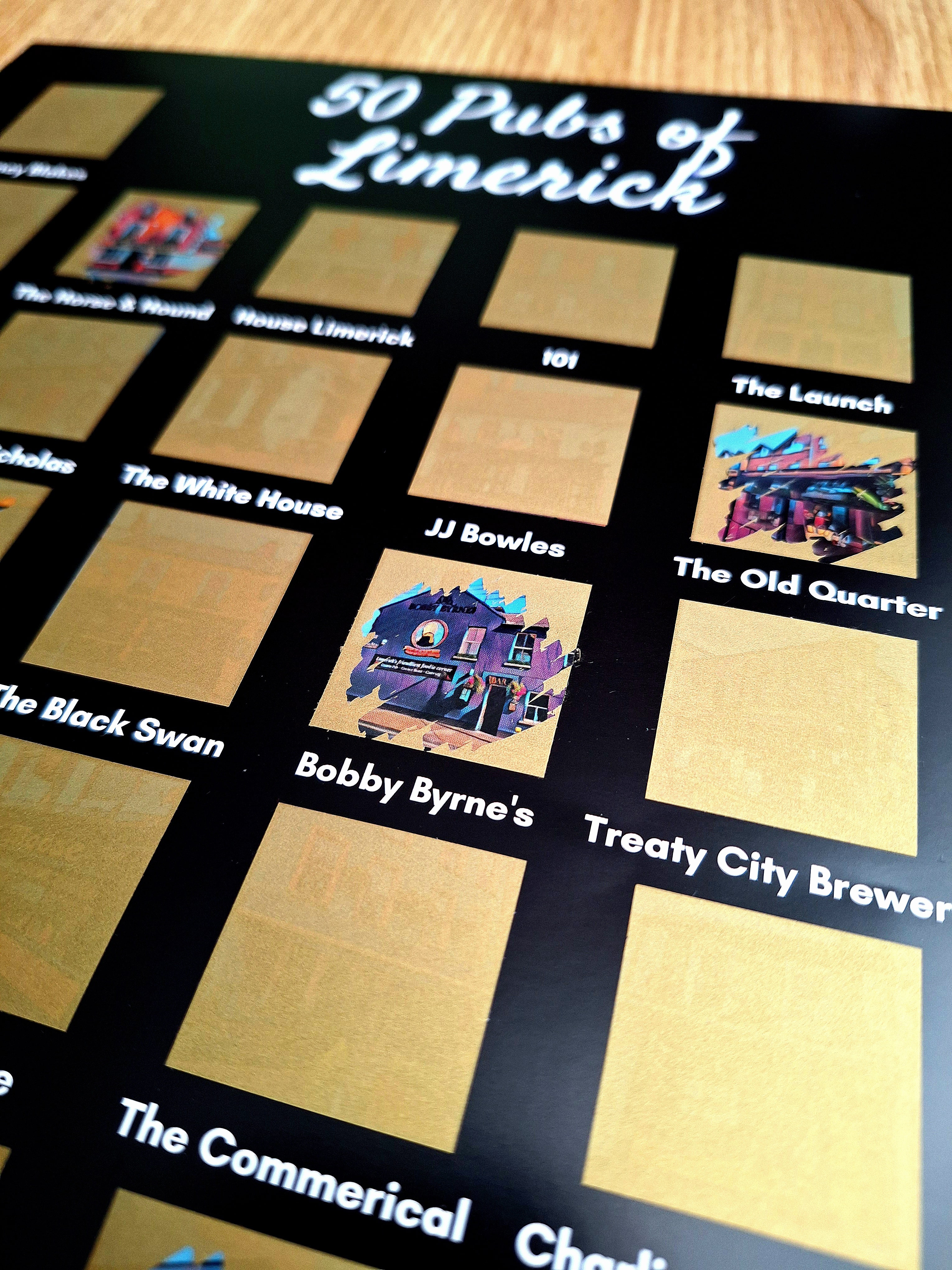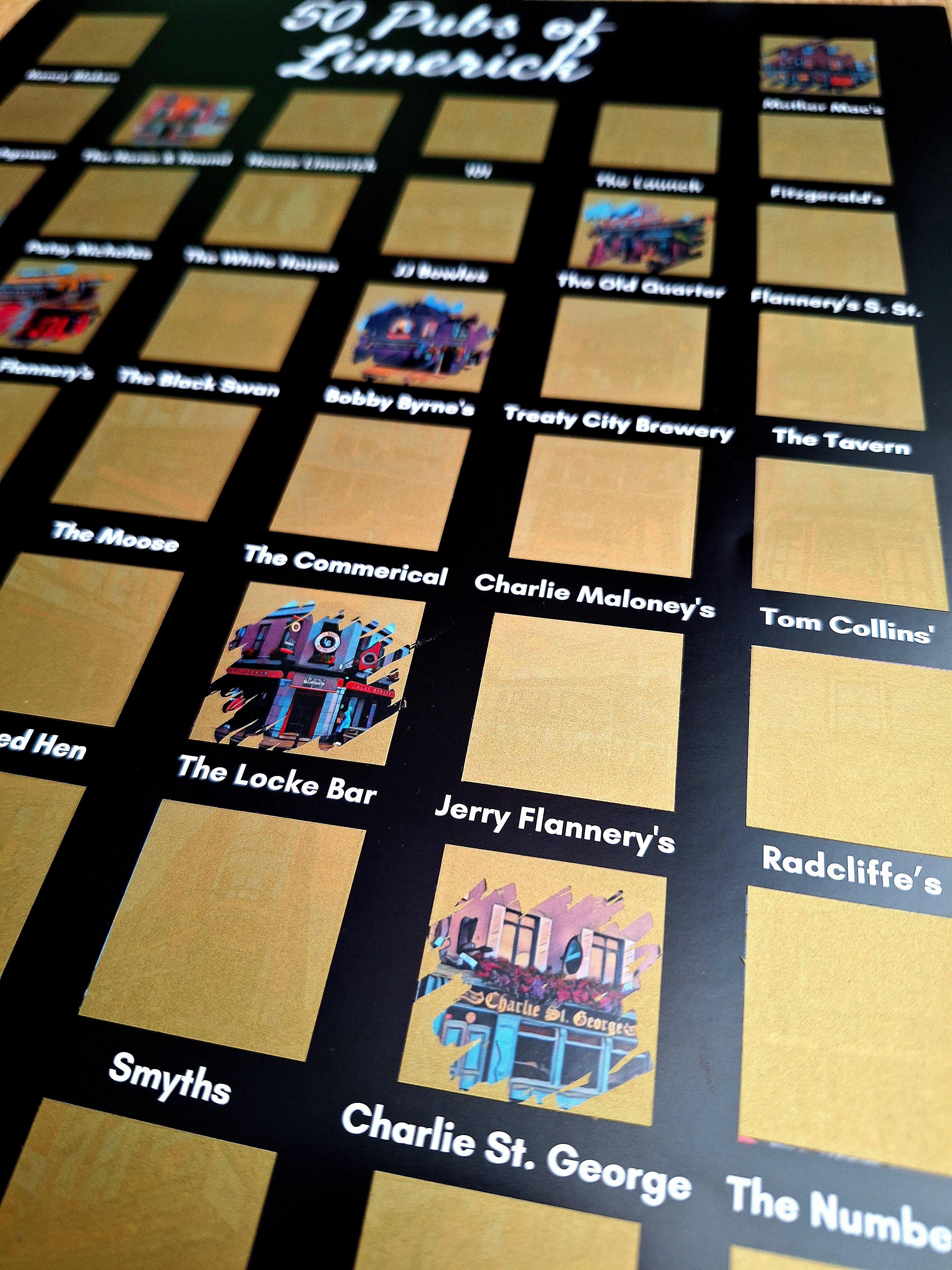 Uncover the hidden gems of Limerick’s pub scene with our 50 Pubs of Limerick, Scratch-Off Poster!