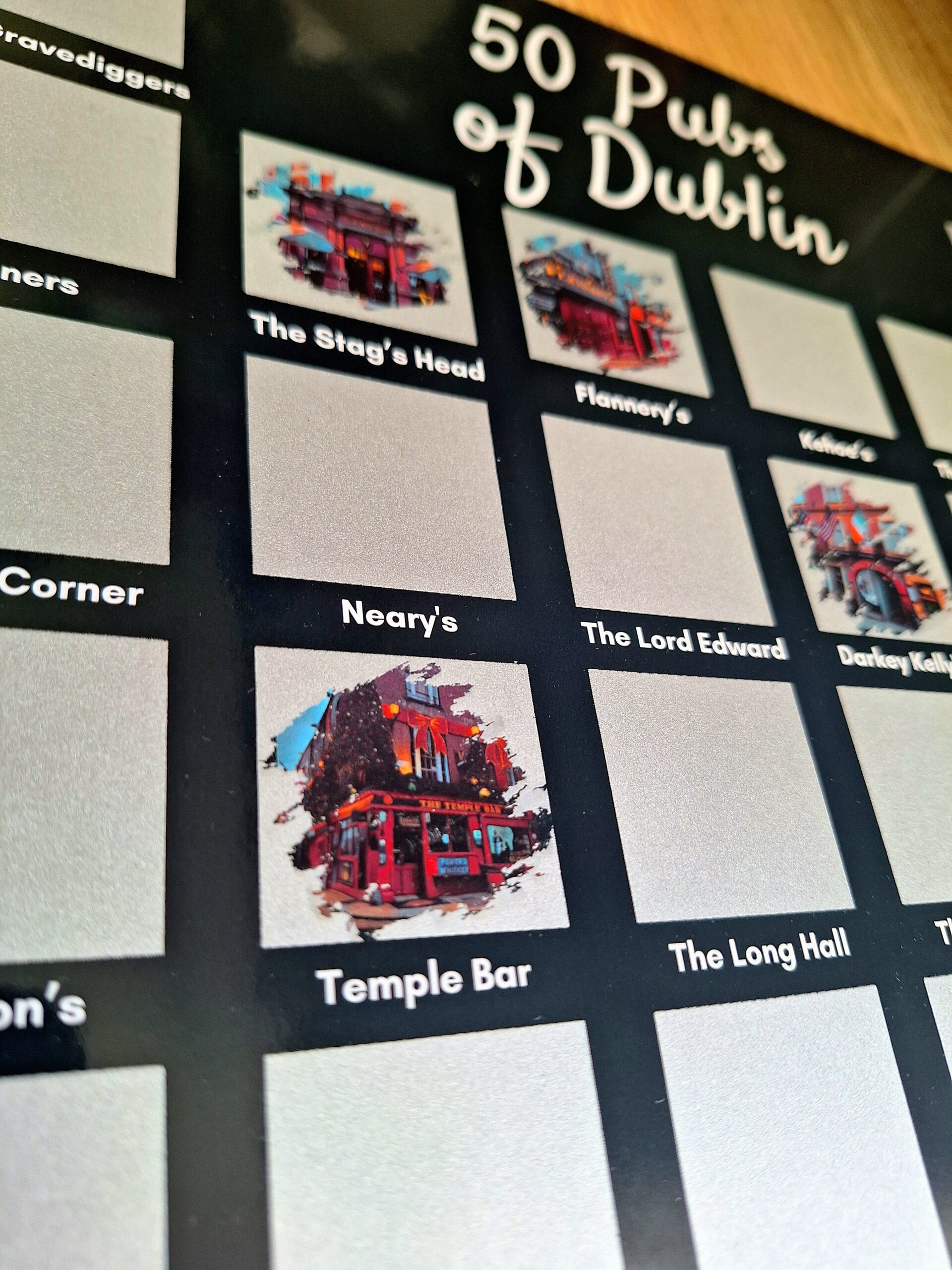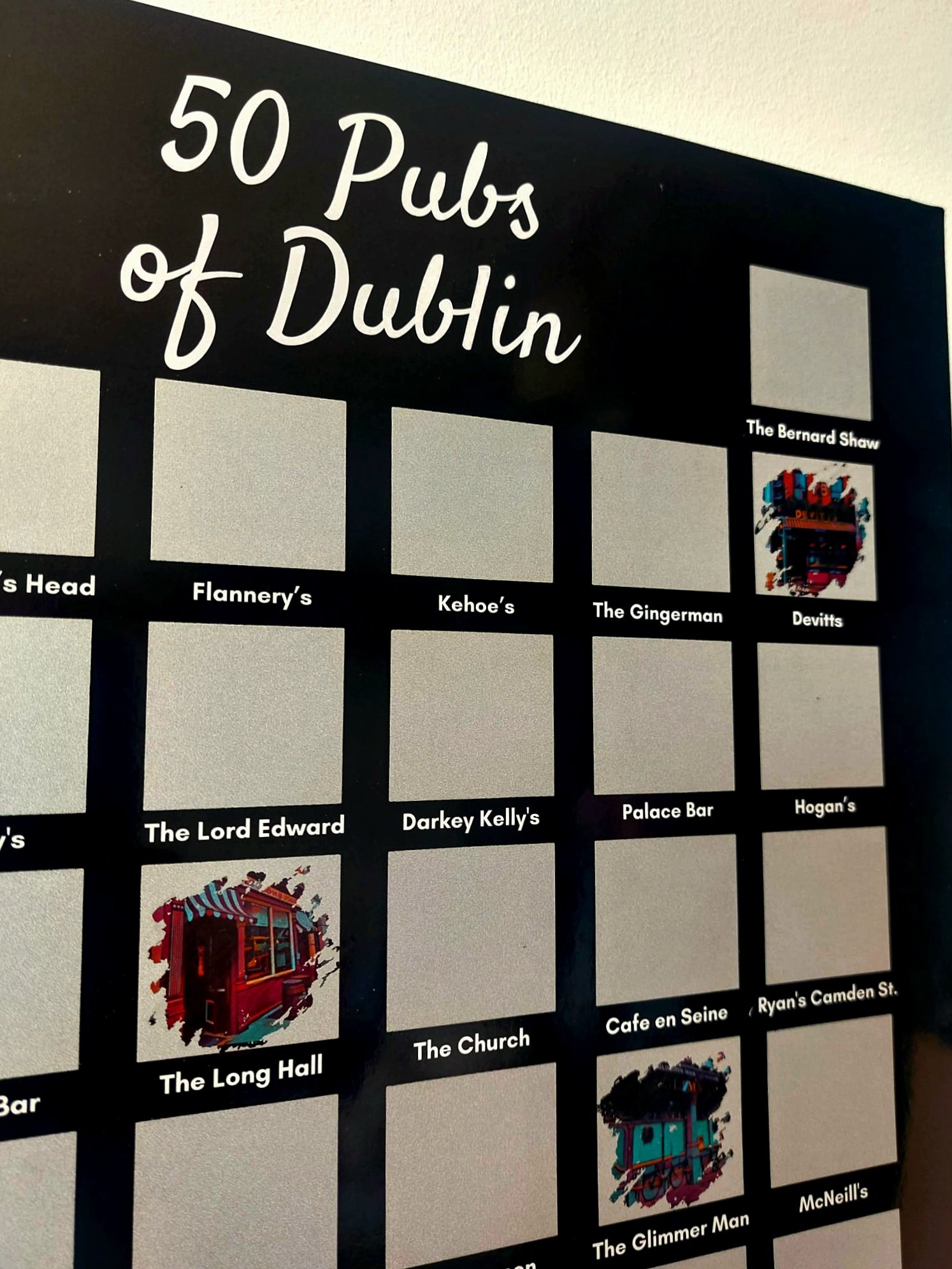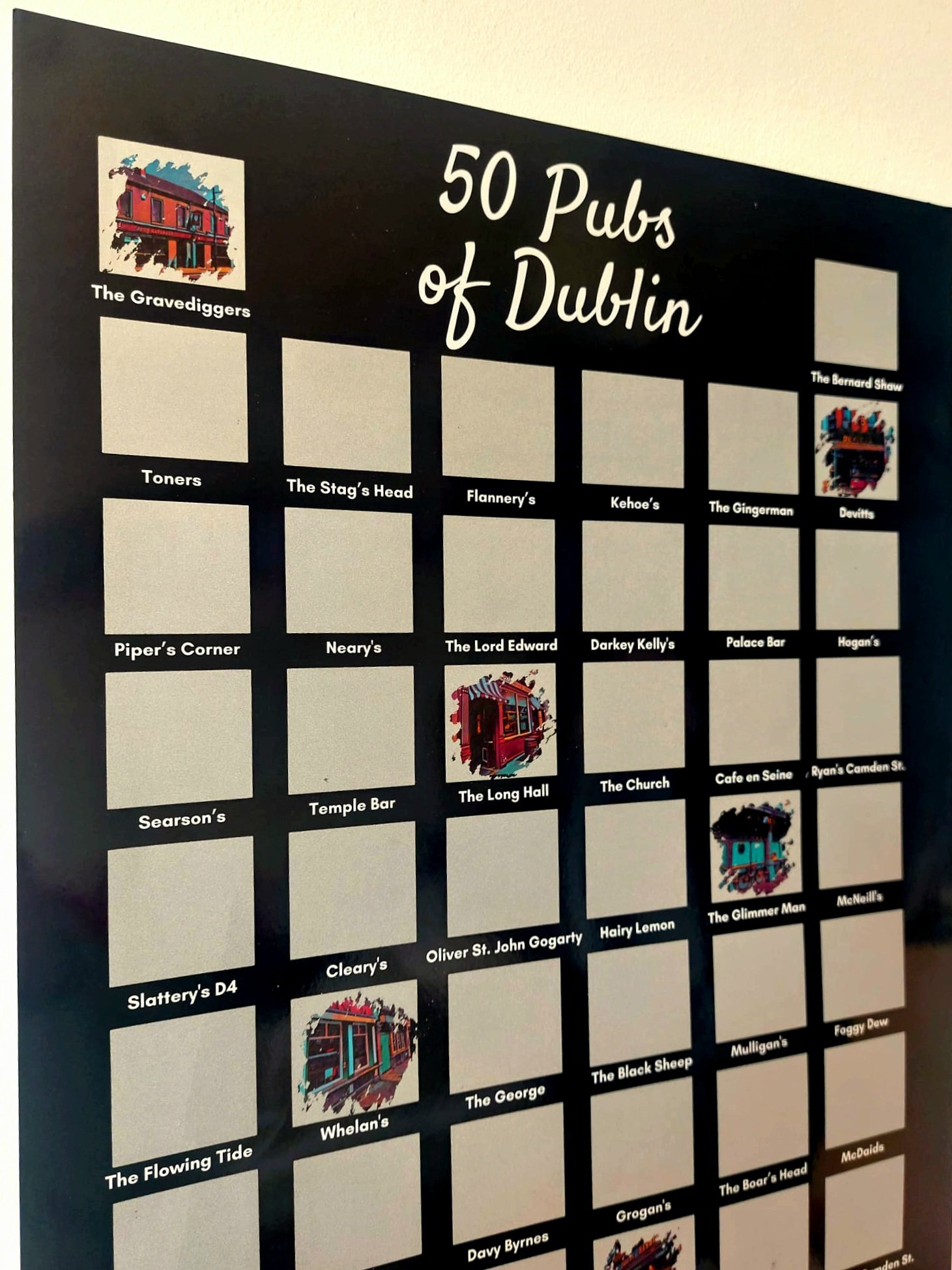 Uncover the hidden gems of Dublin’s pub scene with our 50 Pubs of Dublin, Scratch-Off Poster!